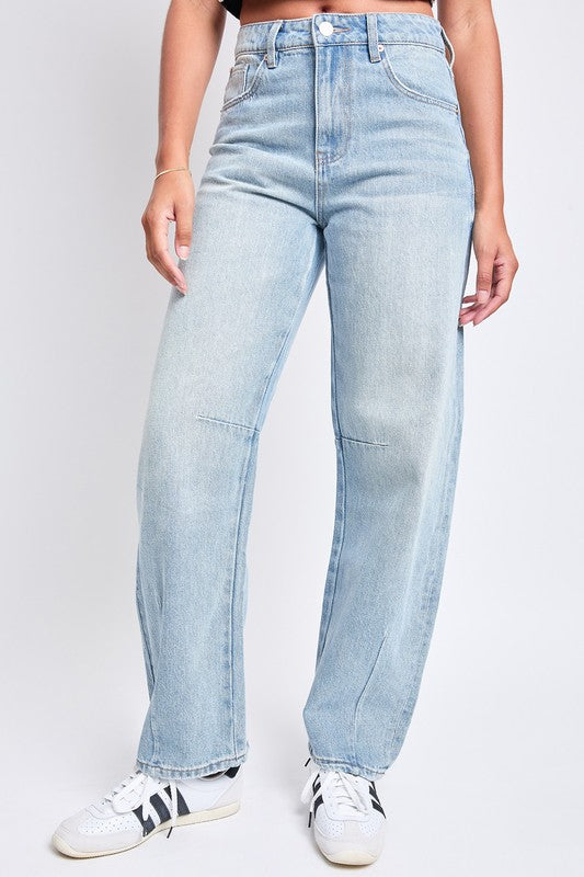 Junior Relaxed Fit Rigid Detailed Barrel Jeans by YMI Jeans, where classic denim meets contemporary fashion for the trendsetting young woman. Crafted with meticulous attention to detail, these jeans offer a perfect blend of timeless style and modern features. Featuring Mid rise waist, these jeans provide a comfortable and flattering fit that sits perfectly at the waist. The barrel fit design creates a unique and stylish silhouette, making these jeans a standout piece in any wardrobe. Made from rigid denim, these jeans offer a durable and structured feel that enhances their classic appeal. The dart details add a touch of sophistication and uniqueness, elevating the overall design and providing a tailored look. Product Details: - Relaxed Barrel Fit - Rigid Denim - Mid Rise - Dart Details - 1 Button with Zipper Closure Size & Fit (based on size 5): - Inseam: 30" - Rise: 12" - Leg Opening: 17" Machine wash cold.