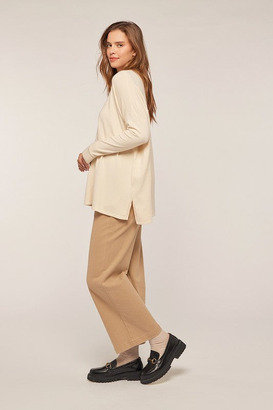 Long sleeve Drop shoulder Side slit Soft touch Relax fit